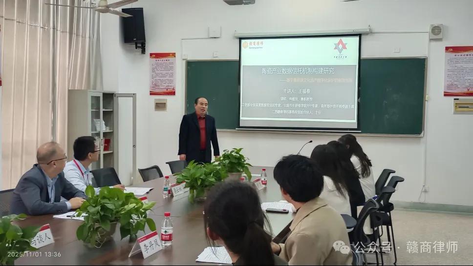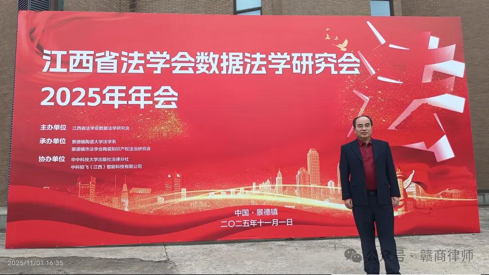 2025年11月1日,江西省法学会数据法学研究会2025年年会暨“产业数据的法律保护”学术研讨会在景德镇陶瓷大学举行。江西赣商律师事务所创始合伙人、主任王福春律师受邀参会,并作《陶瓷产业数据信托机制构建研究——基于景德镇文化遗产数字化保护的制度创新》主题分享