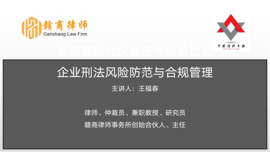 2021年7月9日下午,赣商律师举办系列沙龙第66期之《企业刑事法律风险与合规管理》,由赣商律师事务所创始合伙人、主任,王福春律师,应邀作主题分享,为赣商企业家和民刑交叉合规律师团队进行一次实务培训,解决当下企业和企业家可能面临的刑法风险,紧跟时代浪潮增强刑事合规应对能力。